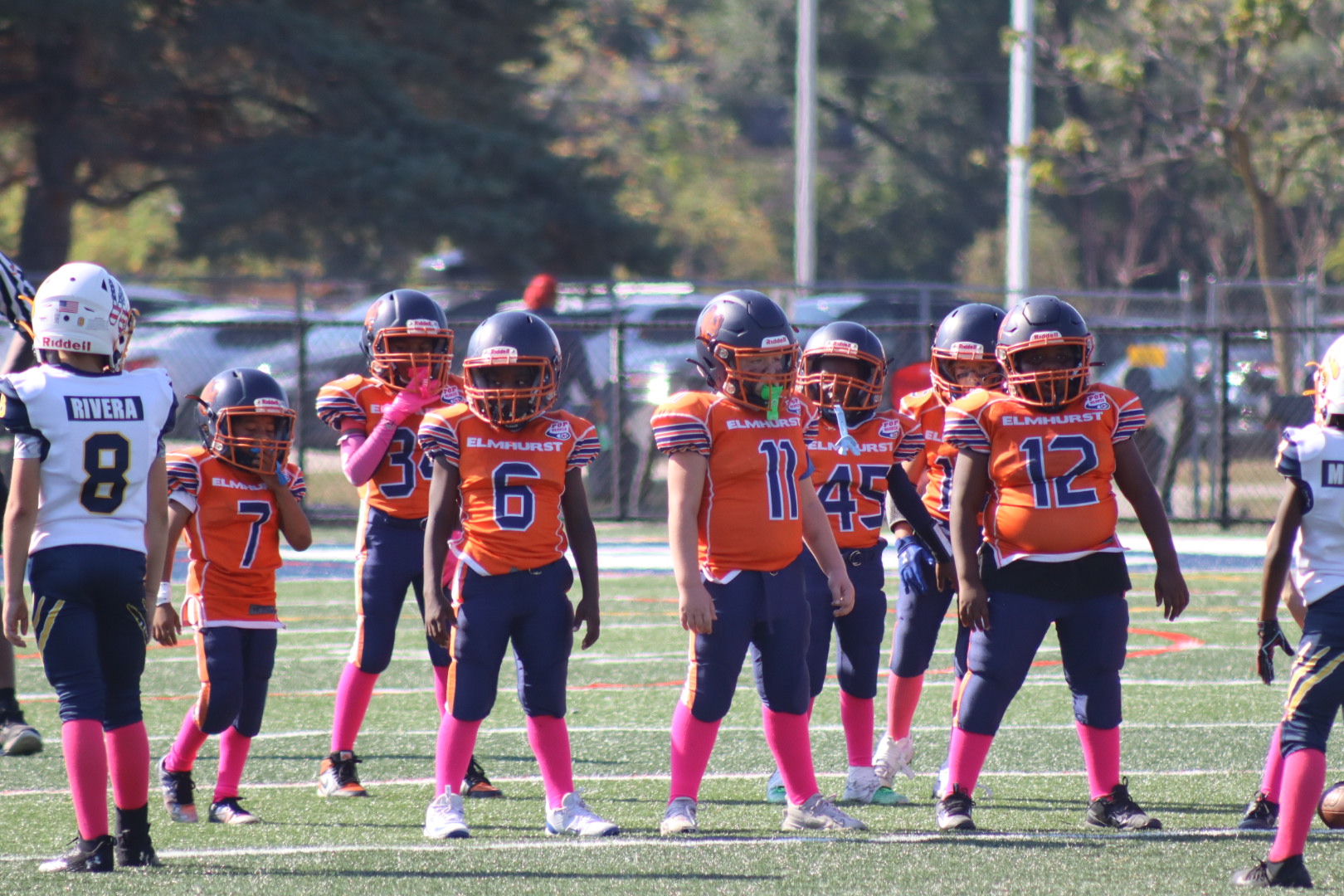 The Elmhurst Bears follow the Pop Warner guidelines for age-based play (no weight restrictions on players). The